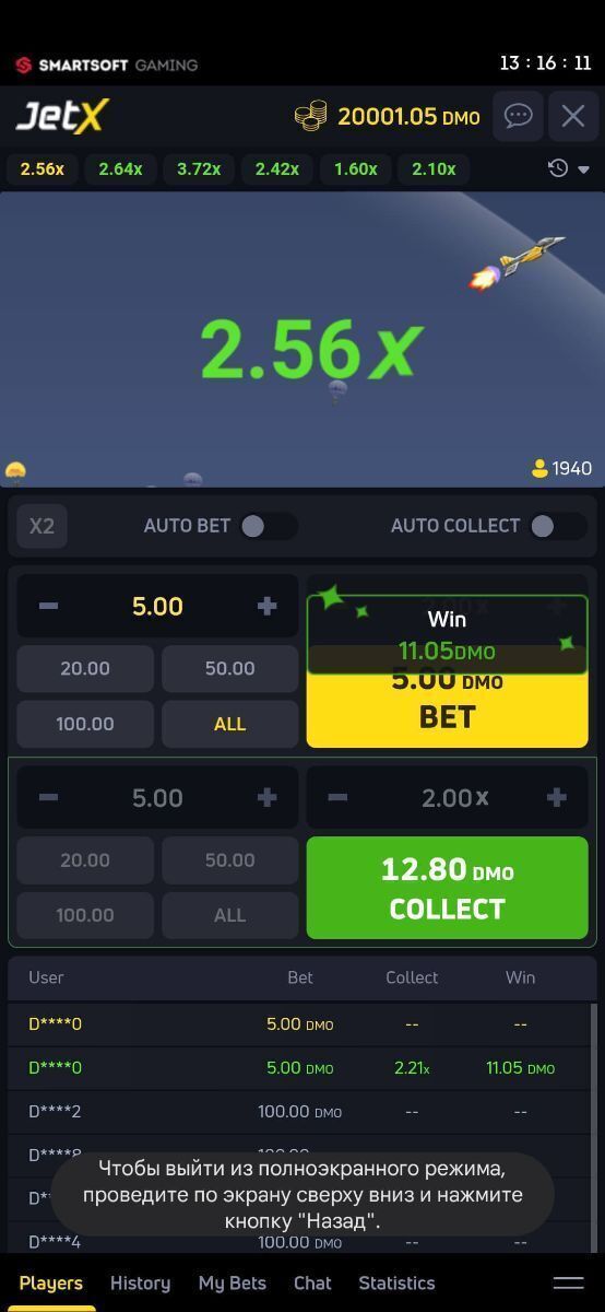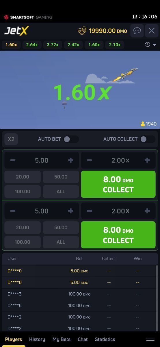 After launching JetX in demo mode, the game comes with virtual coins that can be used without any limits. This way, players can test spins and features for as long as they want.